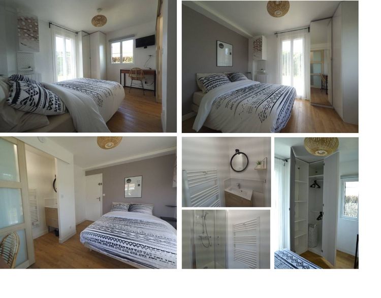 -- Chambre disponible (13m2) : chambre avec porte fenêtre sur terrasse, lit double+matelas (épaisseur 25 cm renforcement lombaire)+ linge de lit/couette/oreillers+dressing/armoire avec cintres+rideaux avec volets+ bureau/chaise/lampe+ TV HD connecté + sac à linge+miroir+ étagères. La porte ferme à clé. ---****Salle de douche privative****: douche avec paroi vitrée+ meuble vasque 2 tiroirs+miroir+ étagère+ linge de toilettes (2 serviettes et 1 tapis de bain)+ sèche serviette électrique