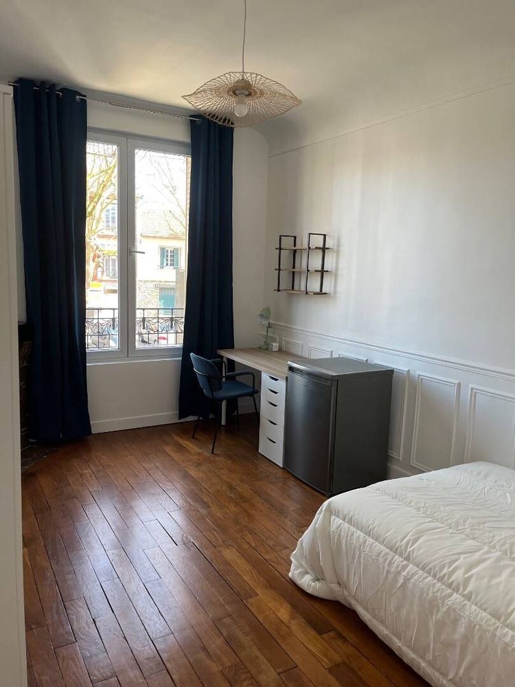 Chambre bien agencée avec grande porte-fenêtre. Très clair. Entièrement rénovée. Literie de qualité. Réfrigérateur personnel.