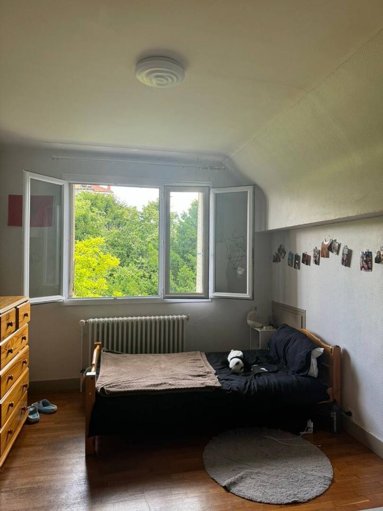 La cuisine est toute équipée avec meubles de rangement, table, évier, plaque induction quatre feux, four à pyrolyse, hotte aspirante, micro-ondes, table, chaises et vaisselle; la véranda est équipée : table, chaises, buffet. Garage pour vélo ou mobylette; buanderie avec machine à laver et équipements de repassage; congélateur coffre. Provision mensuelle sur charge de 65€ , avec réajustement en fin de bail, si besoin, au vu des factures réelles dont il est justifié aux locataires. (Les charges comprennent l'eau, le chauffage, l'électricité, l'entretien des lieux communs, la quote-part de taxe des ordures ménagères). Dépôt de garantie: un mois de loyer hors charges (390 €) Tous services à 100 / 200 m : tramway, bus, commerces et autres services. Bail individuel, sans solidarité, de particulier à particulier sans frais Chauffage central par pompe à chaleur activée partiellement par production photovoltaïque. Espace de stockage à disposition pour valises et autres encombrants. Régulation électronique du chauffage central (chambre par chambre) et l'électricité est en partie produite par une centrale solaire photovoltaïque). APL possible. Renseignements complémentaires, nous contacter. Autres photos de la chambre et visite sur simple demande.