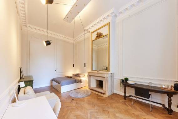 CHINATOWN_1STLOOR GARDEN SIDE_32m² chambre avec un lit double, un petit bureau, une armoire à vêtements, une baignoire et un WC. En plus de ce bel espace privé, vous bénéficierez d'un magnifique espace commun à partager en coliving avec les autres occupants de la maison. L'espace commun et les escaliers sont nettoyés chaque semaine par notre équipe. ( les charges comprennent le gaz, l'électricité, l'eau, l'internet, la télévision, l'utilisation du fitness et du sauna, le nettoyage des parties communes ).