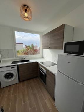 Appartement de type F1, refait entièrement à neuf, situé au 4ième étage avec ascenseur comprenant une entrée avec placard, une pièce principale (lumineuse) avec un placard, une cuisine séparée et équipée (four, plaque de cuisson, frigo, micro-onde neufs), une salle de bains avec WC. Une cave complète ce bien.