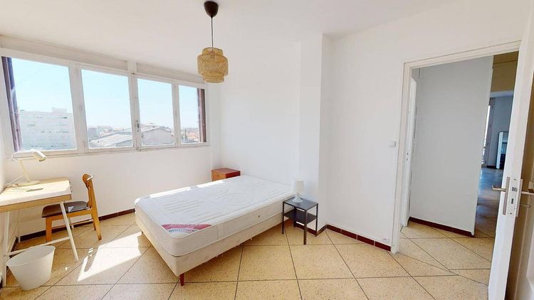 APPARTEMENT 5 PIÈCES AVEC TERRASSE 📍Au 27 Boulevard De La Révolution à Marseille (13003), venez découvrir cette colocation de 4 chambres de 74 m². 🛌LA CHAMBRE La chambre 3 très lumineuse grâce à ses grandes baies vitrée offre tout le confort nécessaire (lit double, bureau, chaise et rangements). 🛋LES ESPACES COMMUNS Cet appartement de 5 pièces dispose de trois chambres, d'une cuisine et d'une salle de bains. Il bénéficie d'un chauffage collectif et se situe au 9e étage avec ascenseur. 🏡LES EXTÉRIEURS Pour des rangements complémentaires, l'appartement dispose également d'une cave. Bénéficiez d'espace extérieur pour gagner en confort avec une terrasse. Un gardien est présent. 🏙LE QUARTIER Vous trouverez le cinéma d'art Gyptis de même que deux théâtres dans les environs. Il y a également plusieurs restaurants, commerces, boulangeries, supermarchés & épiceries. L'Aix-Marseille Université et l'École centrale de Marseille se trouvent à moins de 10 minutes en voiture. Côté transports, il y a 10 lignes de bus ainsi que la station de métro National (ligne M2) à moins de 10 minutes à pied. L'autoroute A7 est accessible à 1 km. 💡SERVICES ET ÉQUIPEMENTS Entretien de la chaudière Gardien Internet Fibre Chauffage Eau chaude Gaz Electricité Taxe Ordures Ménagères Entretien de l'immeuble Eau courante Entretien du jardin ———————————————————————— Bail individuel à la chambre. Pas de caution solidaire. Chacun est libre de partir quand il veut sans se soucier des autres colocs, dès le moment où il respecte un mois de préavis. Eligible aux APL. REFERENCE DU BIEN : SP7832Q