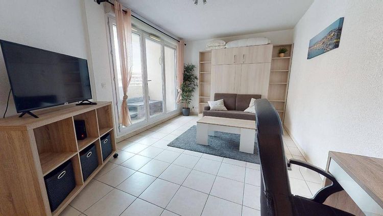 STUDIO AVEC BALCON Venez découvrir au 69 Boulevard Rabatau (Marseille, 13008) ce studio de 29 m². 🏠 L'APPARTEMENT Ce studio comporte une pièce de vie aménagée avec un canapé convertible, un grand placard de rangement, une TV, un bureau, une chaise et une kitchenette. La kitchenette est équipée avec une machine à laver, un micro-ondes, un frigo et des rangements. L'entrée comprend également un grand dressing avec étagères et penderies. Une salle de bain avec douche, WC et meuble vasque vient compéter ce logement. Le plus : la présence d'un balcon accessible depuis la pièce de vie ! 🌳 LES EXTÉRIEURS Un local vélos est présent dans le bâtiment. Un balcon offre à cet appartement de l'espace complémentaire appréciable. Une place de parking sécurisée dans le sous-sol de l'immeuble est disponible, pour un supplément de 120 € par mois. 🏙️ LE QUARTIER Cet appartement se trouve : à proximité des commerces nécessaire à la vie de tous les jours à environ 10 minutes à pied de l'arrêt de métro Rond Point du Prado desservi par la ligne M2 à proximité du Parc du 26e Centenaire à proximité des lignes de bus 72, 73, 19 et 521 ———————————————————————— Éligible aux APL. REFERENCE DU BIEN : SP5506X