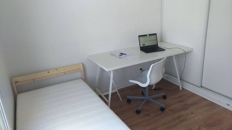 Chambre de 25m2 avec balcon privatif, lumineuse , parquet, et mobilier : - Lit simple 140x190 cm + matelas et couette, - Rangements penderie étagère - Bureau, et Fauteuil - Serrure privative