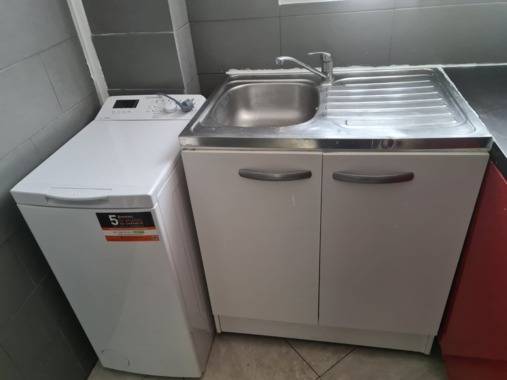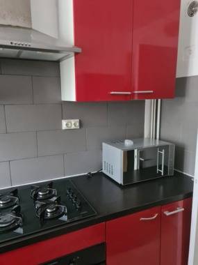 - Cuisine équipée : placard de rangement, four, cuisinière à gaz, hotte, réfrigérateur combiné, lave linge, micro-ondes
