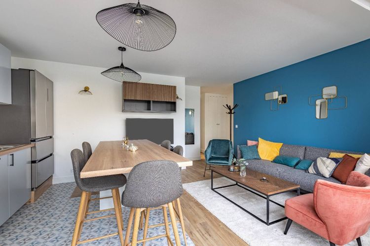 D’une surface d’environ 90 m², l’appartement a été entièrement rénové et décoré avec goût, et est parfaitement pensé pour une vie en colocation confortable.