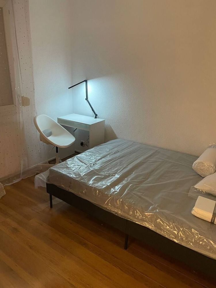 Chambre individuelle d'environ 11 m2 , comportant : un lit 2 places, matelas 2 places, couette, oreillers, un bureau, lampe de bureau, chaise de bureau, un dressing. Et elle a une vue sur l'espace vert de la résidence.