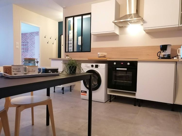 Trois belles chambres meublées de 10 à 11m2, standing et décorée avec gout par une décoratrice d’intérieure, tout confort, grand lit double 140 *200, bureau chaise, placards de rangement, table de nuit, lampe de chevet, oreiller, couettes et accès internet haut débit fibre wifi. Les chambres sont équipées de fenêtres double vitrage. Grand salon cuisine ouvert moderne climatisé Tout équipé de rangements, four, plaque de cuisson, frigo congélateur, bouilloire, cafetière, four à micro-onde, télé avec internet box fibre optique / wifi, Vaisselle-ustensile et matériel de cuisine complet, lave-linge, sèche-linge et lave-vaisselle