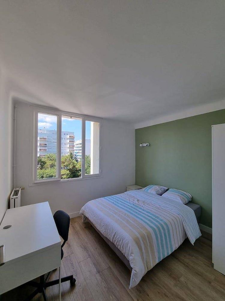 APPARTEMENT 4 PIÈCES AVEC BALCON ET PARKING À proximité du tramway 2 (Mas Drevon), nous vous proposons cette colocation de 3 chambres de 65 m² en location au 114 Rue Guillaume Janvier à Montpellier (34070). 🛌 LA CHAMBRE Cette chambre n’a pas pu être photographiée. Elle dispose d'un lit double, une table de chevet, un bureau avec une chaise et une armoire. 🏡 LES ESPACES COMMUNS Cet appartement de 4 pièces offre un salon avec canapé convertible et télévision, deux autres chambres, une cuisine équipée d'un four, d'un lave-vaisselle ainsi que d'une plaque de cuisson et une salle de bains équipée d'une douche ainsi que d'un meuble vasque. L'appartement possède un chauffage individuel alimenté à l'électricité. Il est équipé de la fibre optique. Il est situé au 5e étage d'un immeuble avec ascenseur. 🌳 LES EXTÉRIEURS Idéal pour prendre le soleil ou prendre l'air, l'appartement possède un balcon. Un local vélos est également disponible dans le bâtiment. Tout est prévu pour votre véhicule : parmi les emplacements disponibles dans l'immeuble, une place de parking est réservée pour cet appartement. 🏙️ LE QUARTIER Cet appartement se trouve à quelques pas des commerces du quotidien, ( Auchan et Casino supermarchés à 100 mètres à pied), des lieux de restauration rapide et des transports en commun: Tramway ligne 2 à 500 mètres ( station Croix d’Argent), ligne 2 et 3 à 5 minutes,(station Nouveau Saint Roch). Vous serez à la Faculté de Sciences de Montpellier et à l’Université de Montpellier en 25 minutes en métro ligne 1 et 2. ------------- Bail individuel à la chambre. Pas de caution solidaire. Chacun est libre de partir quand il veut sans se soucier des autres colocs, dès le moment où il respecte un mois de préavis. Eligible aux APL. REFERENCE DU BIEN : SP6328B