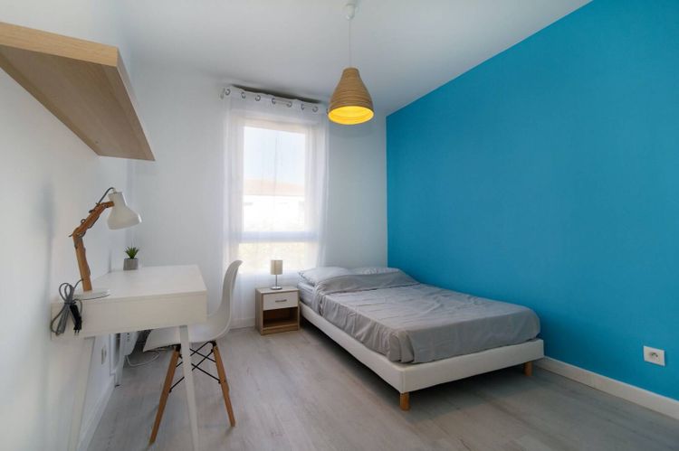 MBS - CHAMBRE BLEU DISPO DANS COLOCATION MONTPELLIER 3 CHAMBRES Bail meublé de 1 à 12 mois (renouvellables) éligible APL Proche de la Montpellier Business School (MBS) / SupAgro / Quartier Celleneuve Résidence LE TEGULA, moderne et sécurisée, construite en 2010. La résidence est composée de familles, jeunes couples et quelques colocations. Arrêt de tramway Celleneuve à 100m, ligne 3. Temps pour aller à la Business School : 10min à pied Temps pour aller vers les Facs: 25 min en Tramway Les pistes cyclables permettent également de circuler facilement et en sécurité dans toute la ville. L'appartement est au 1er étage. Possibilité de stationner dans l'enceinte de la résidence. Vous avez également accès à un local vélo. La chambres fait 11m2. Elle est composée d'un lit 120,une table de nuit, un grand dressing, un bureau, un miroir, un radiateur à chaleur douce. La chambre est verrouillable à clé. Accès espaces communs: cuisine, SDB, WC, salon et terrasse