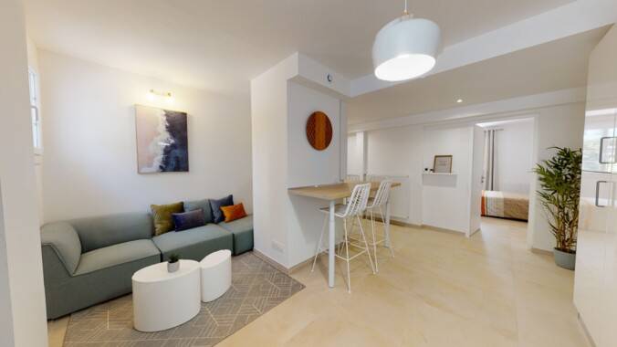 Moderne et spacieux, équipé et meublé. Il se compose d’un grand espace de vie salon, salle à manger de 29 m² avec une cuisine totalement équipée et fonctionnelle, un espace buanderie, un wc indépendant.