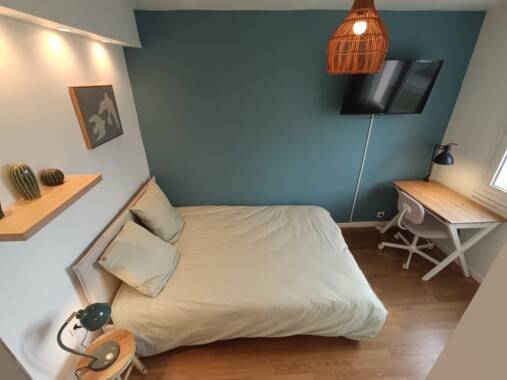 Les chambres sont lumineuses, bien agencées et pensées pour offrir confort, intimité et praticité aux colocataires.