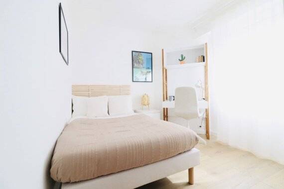 This beautiful apartment on the 2nd floor of a contemporary building with an elevator offers the perfect blend of comfort and convenience in the heart of Nice. The open-concept living room and kitchen create a seamless space for relaxation and entertainment, designed with a contemporary style and warm color palette that invites you to feel at home. The five well-appointed bedrooms feature double beds, ample storage, desks, and personalized decor, ensuring both comfort and functionality. The apartment is fully furnished with modern amenities, including a large TV, washer, dryer, and dishwasher, making daily living easy and enjoyable. Its prime location provides effortless access to Nice's vibrant city life, with shops, restaurants, and attractions just steps away. The Alsace-Lorraine tram station is a short 5-minute walk, offering excellent connectivity throughout the city. The rent includes building service charges, bi-monthly professional cleaning of communal areas, internet/cable TV, water, and a provision for electricity, with the final balance adjusted annually or at the end of the tenancy based on actual consumption. A one-time application fee covers the preparation of the lease, check-in and check-out procedures, inventory documentation, and dedicated assistance throughout your stay. The apartment is APL eligible; for a personalized simulation, please visit the CAF website.