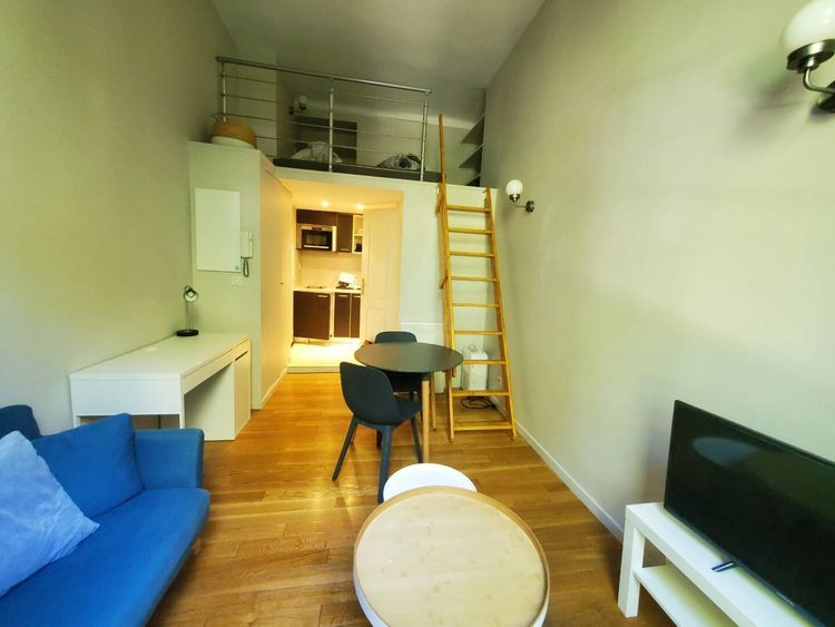 Studio pour étudiants de 16m² avec couchage en mezzanine (5m²).
