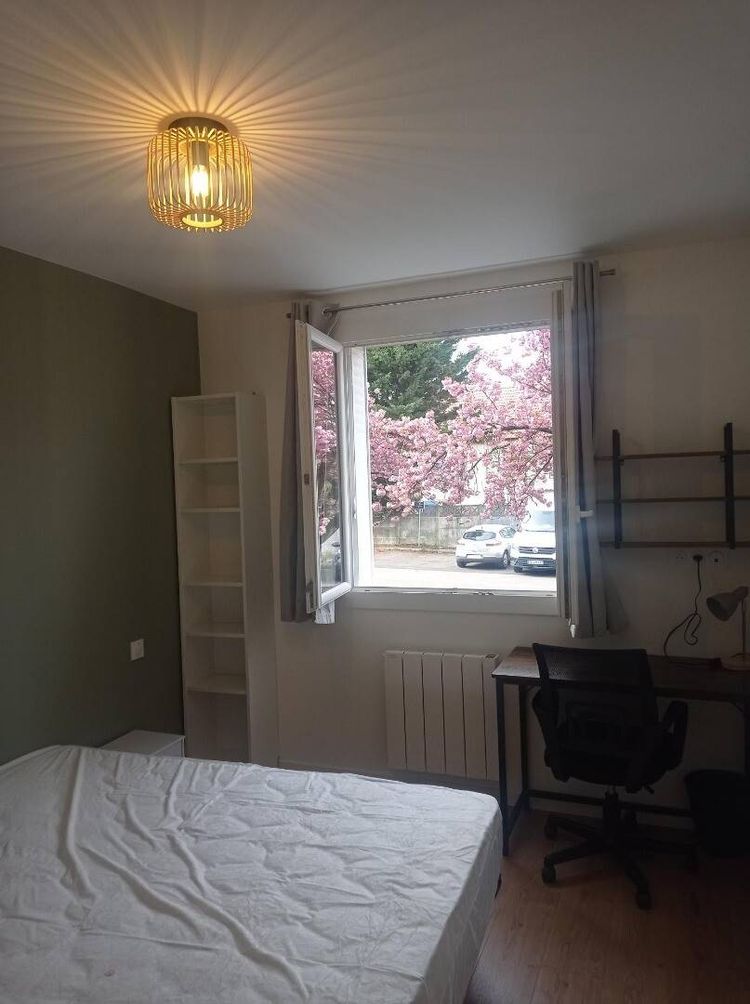 Plus grande chambre de la colocation avec un grand balcon de 5m2. Sommier + matelas neuf 140X190 à mémoire de forme, bureau avec lampe, chaise, armoire penderie, bibliothèque.