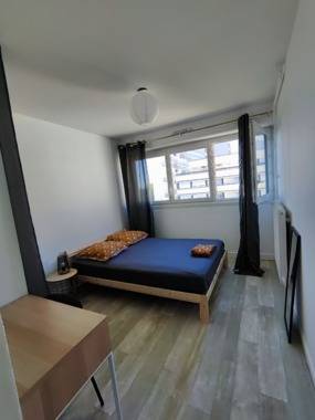 Jolie chambre spacieuse et lumineuse équipée à neuf. Lit 140*200, chevet, beau dressing avec penderie, bureau avec chaise. Vous bénéficierez d'un balcon d'environ 3m² sans vis à vis. Plus qu'à poser vos valises
