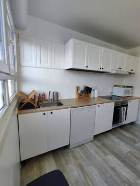 Comme dans un petit studio cette chambre lumineuse offre une salle de douche privative. Équipée à neuf: Lit 140*200, chevet, beau dressing avec penderie, bureau avec chaise. Toute votre intimité au sein d'une colocation.