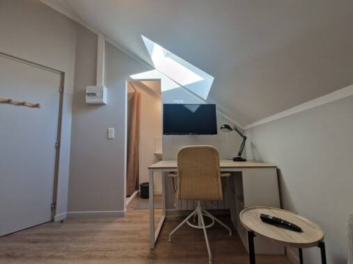 Chambre rénovée de 12 m², conçue pour offrir un maximum de confort et de praticité. Elle est entièrement meublée et équipée, comprenant :
