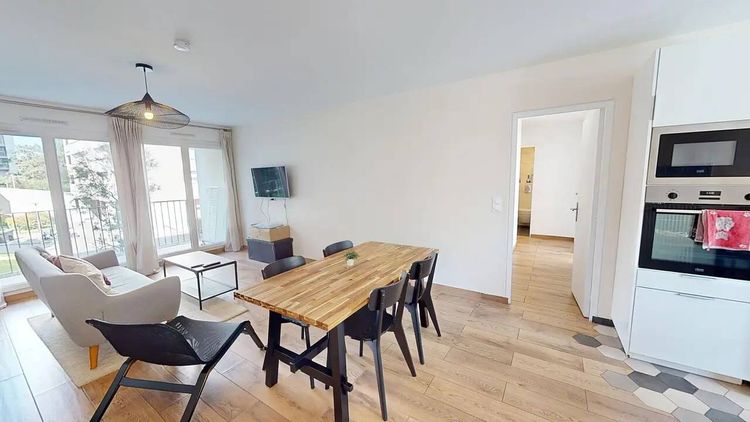 APPARTEMENT 6 PIÈCES AVEC BALCON Notre agence vous présente cette colocation de 5 chambres de 110 m² en location au 11 Rue Daguerre à Rosny-sous-Bois (93110). LA CHAMBRE Cette chambre dispose d'un lit double, d'une table de chevet avec une lampe, d'un bureau avec une chaise et d'un placard mural. Cette chambre a un accès direct sur le balcon filant de l'appartement. LES ESPACES COMMUNS Cette colocation de 5 chambres s'ouvre sur une grande pièce de vie avec un coin séjour et un coin cuisine. Le séjour est aménagé d'un canapé, d'une table basse, d'une télévision, d'un meuble de rangements, d'un fauteuil ainsi que d'une table avec quatre chaises. La cuisine est équipée d'un four, d'un micro-ondes, d'un réfrigérateur avec congélateur, de plaques de cuisson avec une hotte, d'une bouilloire, d'une machine à laver, d'un évier ainsi que de nombreux rangements. Cette pièce a un accès direct sur le balcon filant. La salle d'eau dispose d'un meuble vasque avec un miroir, d'une cabine de douche et d'un WC. Deux WC supplémentaires sont présents dans le logement. Le grand appartement est équipé d'un chauffage collectif. Il est équipé de la fibre. Il est situé au 1ᵉʳ étage d'un immeuble avec ascenseur. LES EXTÉRIEURS De l'espace complémentaire est fourni par un balcon filant. Un gardien est présent, l'accès est sécurisé par la présence d'un digicode. LE QUARTIER Niveau transports, on trouve 10 lignes de bus à proximité. À 200 m se trouve l'arrêt de métro La Dhuys, desservi par la ligne 11. Il y a le cinéma Ugc Cine Cite Rosny tout comme des restaurants, des commerces, des boulangeries, deux supermarchés, une poissonnerie et deux supérettes à quelques minutes du bien. REFERENCE DU BIEN : SP3825K Les informations sur les risques auxquels ce bien est exposé sont disponibles sur le site Géorisques : www.georisques.gouv.fr Montant estimé des dépenses annuelles d'énergie pour un usage standard : 1753 € par an. Prix moyens des énergies indexés sur l'année 2021,2022,2023 (abonnements compris)