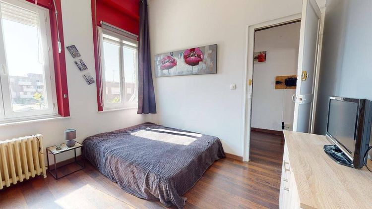 Venez découvrir cette colocation de 6 chambres de 140 m² située au 7 Rue D'inkermann (Roubaix, 59100). 🛌 LA CHAMBRE La chambre 3 se compose d'une armoire de rangement, d'une commode, d'une table de chevet et d'un bureau accompagné de sa chaise. Une salle de bain est aussi à l'usage exclusif de cette chambre, munie d'un meuble vasque, d'un WC et d'une douche. 🏠 LES ESPACES COMMUNS Cette maison comporte trois niveaux, le rez-de-chaussée est attribué aux pièces communes et les deux étages aux chambres. Chacune des chambres disposent d’une salle de bain privative composée d’un meuble vasque, d’un WC, et d’une douche. Concernant les parties communes, l’entrée du logement s’ouvre sur un grand salon muni d’un long canapé, de plusieurs tables basses, d’un meuble TV accompagné de sa TV, et d’un meuble bar accompagné de quatre chaises de bar. La cuisine est très bien équipée avec deux plaques de cuisson et les deux hottes associées, d’un four, d’un lave-vaisselle, d’un frigidaire, ainsi que de nombreux rangements. Enfin, en traversant la cuisine, vous disposerez d’un espace buanderie composé d’une machine à laver, d’un sèche-linge, d’un frigidaire supplémentaire ainsi que de plusieurs placards. Coup de cœur pour ce bien qui permet à chacun de profiter des avantages de la colocation tout en conservant son indépendance ! 🏙️ LE QUARTIER Situé au cœur de Roubaix, la localisation de ce bien est idéal et se trouve : À 2 minutes d’un magasin ALDI. À 7 minutes à pied du métro Roubaix Grand Place. À 7 minutes à pied du métro Roubaix Charles de Gaulle. À 7 minutes à pied du Musée de l’art et de l’industrie. À 12 minutes à pied du E.Leclerc Roubaix. Vous disposerez de toutes les commodités d’un centre-ville et de la proximité de ses activités culturelles. ——————————————————————— Bail individuel à la chambre. Pas de caution solidaire. Chacun est libre de partir quand il veut sans se soucier des autres colocs, dès le moment où il respecte un mois de préavis. Eligible aux APL. REFERENCE DU BIEN : SP8850U