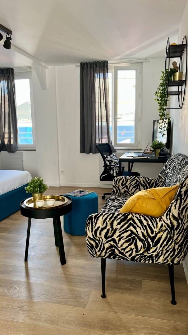 Appartement. ROUEN, quartier Saint Sever - Nous vous proposons à la location cet appartement refait à neuf et entièrement meublé comprenant : une entrée avec coin cuisine, une pièce principale avec un côté nuit un côté séjour et un bureau ainsi qu'une grande salle de bain. A votre disposition, un canapé avec table basse et pouf, un lit double avec coffre de rangement, un grand placard avec portes battantes et rangements et une cuisine équipée avec vaisselle et ustensiles de cuisine.