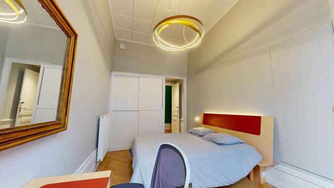 MAISON 8 PIÈCES AVEC JARDIN À deux pas de la gare, Notre agence vous propose cette colocation de 16 chambres de 600 m² située au 13 Rue Bourgneuf (Saint-Étienne, 42000). 🛌 LA CHAMBRE La chambre 11 très lumineuse grâce à ces 3 fenêtres donnant sur cours est aménagée avec : un lit double une tête de lit avec rangements intégrés une bureau une chaise une armoire Une salle de bain privative avec douche, meuble vasque et WC est présente au fond de cette chambre. 🏠 LES ESPACES COMMUNS L'intégralité des parties communes se trouvent au rez-de-chaussé de l'hôtel particulier. L'entrée du co-living se fait par la cour intérieure sur un hall d'entrée qui dessert le salon de la colocation. Ce salon à la décoration soignée est aménagé avec un canapé, des fauteuils, une TV écran plat 4K, des tables basses, etc. Un espace bureau/ co-working avec table et banc est adjacent au salon. Ce co-living comporte également une grande cuisine entièrement équipée et fonctionnelle. Cette cuisine comporte deux éviers, un fourneau comprenant cinq feux et deux fours, deux fours indépendants, trois réfrigérateurs dont un avec casier individuels ainsi que des casiers métalliques de rangements. Une grande table à manger vient compléter cette cuisine. Un espace salle à manger avec table chaise et banquette est présent dans le prolongement de la cuisine. Des espace additionnels viennent compléter ce RDC notamment : une salle de fitness avec tapis de course, vélo d'intérieur, et autres équipements une buanderie tout équipée avec machines à laver et sèches linges Espaces extérieurs : Ce co-living comprend une cour intérieur privative de 200m2. Cette cour offre l'accès à : un local à vélo un local à poubelle PS : une prestation de ménage a lieu une fois par semaine dans les parties communes. 🌳 LES EXTÉRIEURS Une terrasse et un jardin viennent agrémenter cette maison, un gain d'espace et de confort appréciable. Elle est complétée par aussi un local vélos. 🏙️ LE QUARTIER Cet hôtel particulier est situé coeur de la ville, proches de toutes commodités. Un architecte et une décoratrice-designer, ont œuvré pour donner à la maison modernité et fonctionnalité en préservant son charme historique. Entièrement meublée, la résidence se répartit en 3 bâtiments sur cour privative de 200m², dans un environnement très calme. Localisation Transports : Ce co-living se trouve à proximité : de la gare TER Saint-Etienne Carnot de l'arrêt de Tram Grand Gonnet desservi par les lignes T1 et T2 de tous les commerces nécessaire de nombreuses lignes de bus (11, 16, 13, 14, etc.) Universités : Ce co-living se trouve à proximité : de l'école supérieur d'art et de Design de Saint-Etienne de l'Université Jean Monnet (environ 20 minutes en transport ) de l'IFC de Saint-Etienne de Télécom Saint-Etienne de l'école nationale supérieur d'architecture de Saint-Etienne Ce co-living comporte 16 chambres entièrement aménagées avec salle de bain privative. Les chambres sont localisées dans les étages des 3 bâtiments de la demeure. ———————————————————————— Bail individuel à la chambre. Pas de caution solidaire. Chacun est libre de partir quand il veut sans se soucier des autres colocs, dès le moment où il respecte un mois de préavis. Eligible aux APL. REFERENCE DU BIEN : SP4911W