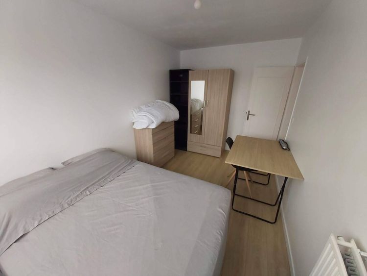 La chambre est situé nord Elle est équipée - d'un lit 140*190. + protège matelas - 2 drap housses - 2 draps - 1 tapis de bain - d'un oreiller + 2 taies - d'une couette avec housse de couette - d'1 commode - d'1 armoire - des rallonges électriques - des multiprises électrique - d'1 planche de bureau sur traiteaux
