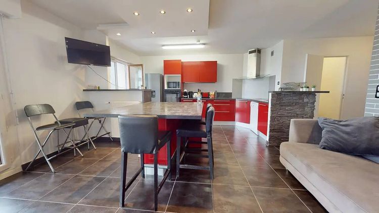 Le logement Notre agence vous présente cette belle colocation de 97m2 avec balcon au 12ème étage située au 11 Avenue du général de Gaulle à Saint-Ouen-l’Aumône. L'appartement, situé dans un quartier avec de nombreuses commodités : Leclerc Express, pharmacie, boucherie, La Poste, cinéma, salle de sport, etc. L'appartement est idéalement situé au cœur de la ville à proximité de transports en commun : à 5 min du RER C et H Saint-Ouen-L’Aumône à 7 min du RER J Saint-Ouen-l'Aumône Quartier de l'Église À 5 mins du bus 33, 56, 57 et N150 arrêt Mairie L'appartement se compose d'une belle pièce de vie lumineuse avec deux ouvertures sur le balcon, meublée d’un canapé, d’une tv, d’une table intégrée et de ses chaises. Elle est ouverte sur la cuisine. La cuisine intégrée possède un équipement électroménager complet: frigo, four, plaques de cuisson avec hotte intégrée. Elle dispose de nombreux rangements. Le couloir loge un lave-linge et un sèche-linge. Les salles de douche modernes sont équipées de rangements et d’un miroir. Les chambres 3 et 5 n’ont pas pu être shootées lors de la visite virtuelle. Cependant, elles offrent tout le confort nécessaire : lit simple, bureau, chaise et rangements. La chambre Les chambres 3 et 5 n’ont pas pu être shooté lors de la visite virtuelle. Cependant elles offrent tout le confort nécessaire : lit double, bureau, chaise et rangement. REFERENCE DU BIEN : SP4510U Les informations sur les risques auxquels ce bien est exposé sont disponibles sur le site Géorisques : www.georisques.gouv.fr Montant estimé des dépenses annuelles d'énergie pour un usage standard : 1972 € par an. Prix moyens des énergies indexés sur l'année 2021,2022,2023 (abonnements compris)