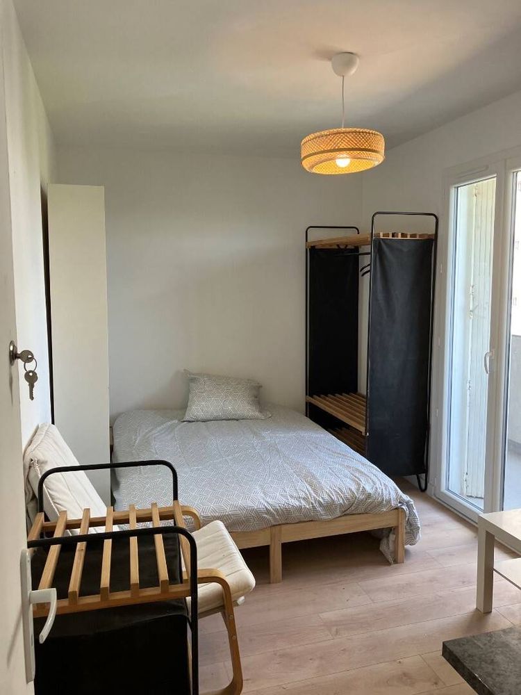 Chambre meublée en parfait état avec tout le confort nécessaire et une télévision connecté à internet. Un balcon privatif accompagne cette chambre