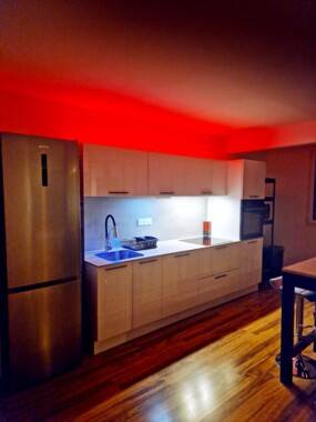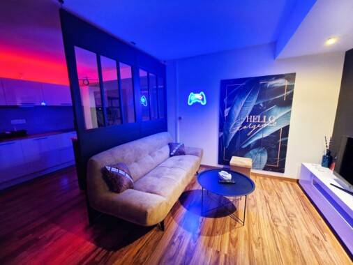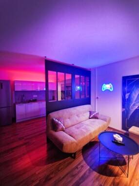 Immeuble sécurisé. L'appartement a été refait à neuf dans un style au design très moderne et chic avec du mobilier et de l'électroménager haut de gamme flambant neuf et de grande qualité. Cuisine design italien toute neuve avec évier sous plan de travail et mitigeur douchette rétro-éclairé. Possibilité de manger sur une table haute dans la cuisine et voir la télévision dans le salon en même temps à travers une verrière type industrielle noire vraiment chic.