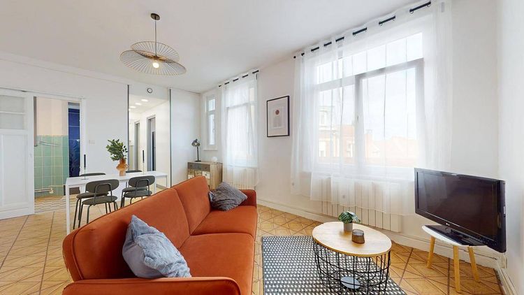 APPARTEMENT EN COLOCATION 3 CHAMBRES Notre agence vous présente cette colocation meublée de 3 chambres de 81 m² à louer au 28 rue Saint-Jacques à Tourcoing. LA CHAMBRE Cette chambre dispose d'un lit double, d'une table de chevet, d'un bureau avec une chaise et de rangements. LES ESPACES COMMUNS Cet appartement s'ouvre sur une entrée desservant un lumineux séjour. Ce séjour dispose d'un canapé, d'une table basse, d'une TV, d'une table avec 4 chaises et d'un buffet. La cuisine est équipée d'un four, d'un réfrigérateur avec congélateur, d'un micro-ondes, de plaques de cuisson, d'une hotte, d'un évier, de nombreux rangements et de tous les ustensiles et le petit électroménager nécessaire. La salle d'eau comprend une douche, d'un meuble vasque, d'un miroir, de rangements et d'un lave-linge. Le T4 possède un chauffage individuel électrique. La fibre optique y est installée. Il se situe au 3ᵉ étage d'un immeuble avec ascenseur. Possibilité d'un garage en sus situé en face, au 27 rue Saint-Jacques (80 euros/mois). LE QUARTIER Cet appartement est idéalement situé en plein centre-ville de Tourcoing, à deux pas des commerces et des espaces de loisirs. Côté transports, le métro à 3 minutes à pied (ligne M2 - arrêt Colbert) permet de se déplacer aisément. De nombreux bus desservent également la zone. -------- Cette colocation est idéale pour les étudiants et / ou jeunes actifs ! Bail individuel à la chambre. Pas de caution solidaire. Chacun est libre de partir quand il veut sans se soucier des autres colocs, dès le moment où il respecte un mois de préavis. Éligible aux APL. REFERENCE DU BIEN : SP3736D Les informations sur les risques auxquels ce bien est exposé sont disponibles sur le site Géorisques : http://www.georisques.gouv.fr/