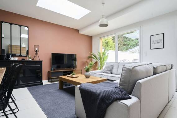 Emplacement sur un secteur vivant, à proximité d’un parc, d’un arrêt de tram et à moins de 10 minutes de la gare SNCF.