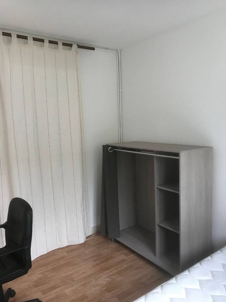 CHAMBRE SJ 1 bureau + chaise roulante + 1 lit 140 + 1 armoire. Chambre mitoyenne et séparée simplement par un rideau. Convient uniquement pour 2 personnes qui se connaissent ou qui accepte cette disposition.