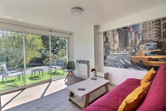 L’ensemble donnant sur une terrasse avec vue jardin. Place de parking attitrée.