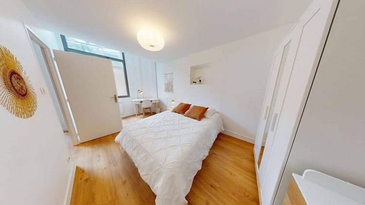 MAISON 8 PIÈCES AVEC TERRASSE Au 21 Rue Decomberousse (Villeurbanne, 69100), venez découvrir cette colocation de 11 chambres de 220 m². 🛌 LA CHAMBRE La chambre 8 est la deuxième chambre à gauche dans le couloir au 1er étage, elle est meublée d'un lit double d'une grande penderie, d'une commode et d'un bureau avec chaise. La chambre est très lumineuse et a été redécorée avec goût et modernité. 🏠 LES ESPACES COMMUNS Idéale pour la vie en communauté, elle se compose de 10 chambres entièrement équipées et meublées, de 5 salle de bains dont deux privatives. Très moderne, elle dispose d'une cuisine dernier cri très spacieuse, un grand salon est également disponible au sous sol pour partager des moments conviviaux ainsi qu'un jardin. 🌳 LES EXTÉRIEURS Gagnez en confort et en espace avec le jardin, le balcon et la terrasse qu'offre cette maison. La maison dispose d'un local vélos. 🏙️ LE QUARTIER Il est idéalement proche de Vaulx-en-Velin la Soie (métro A et tramsT3 et T7 ainsi que nombreuses lignes de bus). Le médipôle est à 10 minutes, comme le Parc OL. Bellecour et Part-Dieu sont accessibles en 20 minutes de transport. ———————————————————————— Bail individuel à la chambre. Pas de caution solidaire. Chacun est libre de partir quand il veut sans se soucier des autres colocs, dès le moment où il respecte un mois de préavis. Eligible aux APL REFERENCE DU BIEN : SP4214H