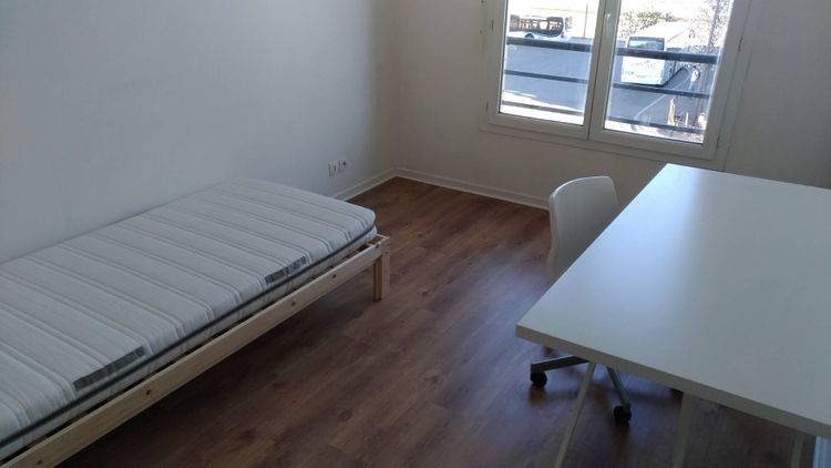 Chambre de 10m2 lumineuse , parquet, et mobilier : - Lit simple 90x190 cm + matelas et couette, - Rangements penderie étagère - Bureau, et Fauteuil - Serrure privative