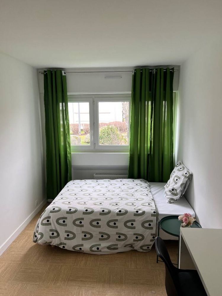 Une chambre lumineuse équipée d’un lit double , bureau, dressing et frigo personnel