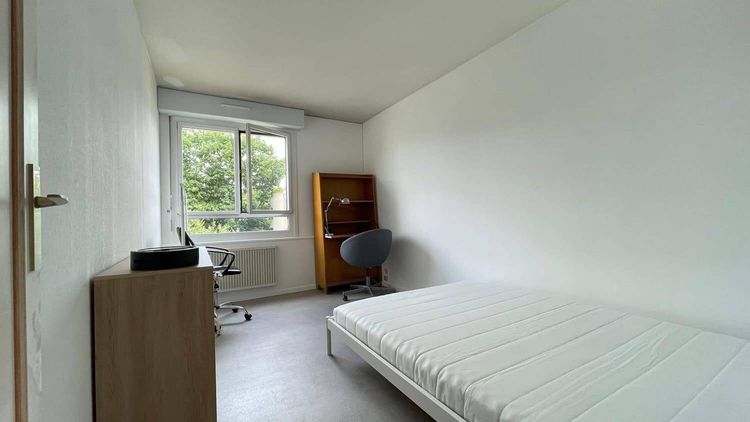 Chambres de 11m2 équipée d’un lit 2 places, bureau, chaise, rangements, penderie