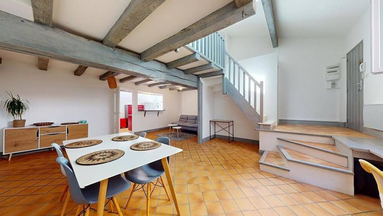 Notre agence vous présente ce T3 de 78m2 situé 47 rue Saint-Yon à la Rochelle. Le logement est situé dans l'hypercentre de la Rochelle, à 2min de la place du marché central et à 7min du Vieux Port. Vous aurez donc aux alentours toutes les commodités du centre-ville : boutiques, commerces, bars, restaurants. L'appartement est meublé, la pièce de vie est spacieuse et comporte table à manger, canapé, table basse, et rangements. La cuisine, attenante, est entièrement équipée avec machine à laver et sèche-linge, frigidaire, plaques de cuisson et hotte, four, micro-ondes et lave-vaisselle. Un très grand garde-manger est présent dans une pièce séparée. À l'étage, vous trouverez deux chambres mansardées. Une équipée avec lit double, et l'autre avec lit simple. Elles disposent toutes deux de grands rangements. La salle d'eau possède une douche, meuble vasque et sèche serviette. Les WC sont séparés. REFERENCE DU BIEN : SP9243L Les informations sur les risques auxquels ce bien est exposé sont disponibles sur le site Géorisques : www.georisques.gouv.fr