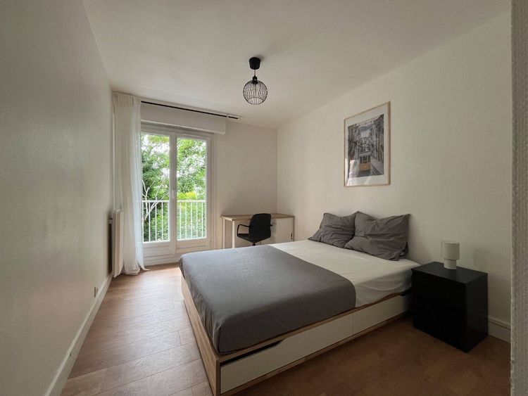 Chambre avec balcon composée de - Lit avec rangements - Armoire de rangement - Bureau - Chaise de bureau ergonomique - meuble de chevet - linge de lit et couette