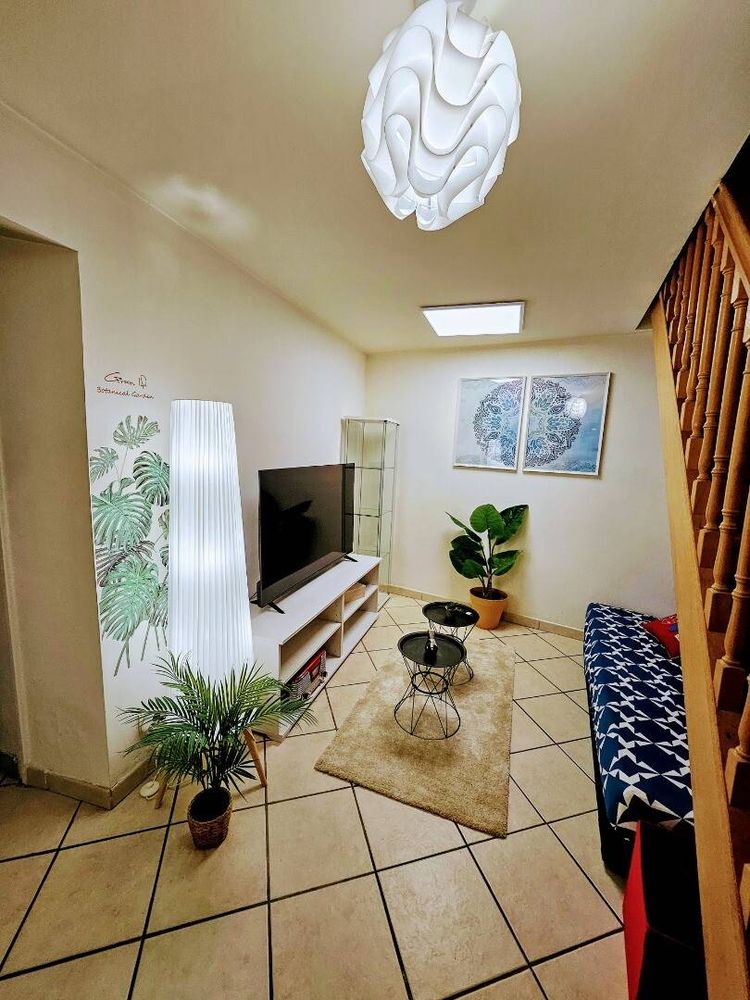 Chambre mansardée, équipée d'un lit double 140 x 190, d'un bureau, d'une chaise, d'une lumière de bureau, d'une télévision Android de 80 cm, d'un abonnement à l'application MOLOTOV pour accéder aux différentes chaines nationales et plus (inclus dans les charges) L'espace rangement comprend : une très grande armoire 4 portes, dont une porte double équipée de miroirs et de tringles pour suspendre vos vêtements et 2 portes avec des étagères.
