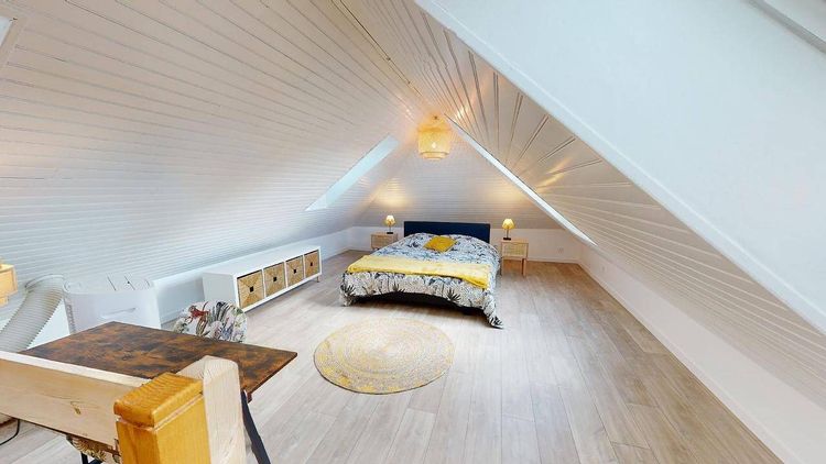 GRAND APPARTEMENT 5 PIÈCES 📍À deux pas du tramway DORNACH GARE 3, Notre agence vous présente cette colocation de 5 chambres de 100 m² située au 19 Rue De Belfort (Mulhouse, 68200). 🛌 LA CHAMBRE Vous disposez dans cette chambre d'un lit double, d'un bureau, d'une chaise, d'un placard, de tables de chevet et d'un coin dressing. 🏠 LES ESPACES COMMUNS Ce T5 se compose de cinq chambres réparties sur deux niveaux. Au premier étage, vous découvrirez quatre chambres, deux toilettes et une salle de bain équipée d'une douche, d'un porte-serviettes, d'une vasque et d'un miroir. De plus, il y a une pièce à vivre avec une cuisine ouverte sur le salon. La cuisine est équipée d'une plaque de cuisson, d'un micro-ondes, d'un four, d'un lave-vaisselle, d'un grille-pain et d'une hotte. Le salon est aménagé avec un canapé, deux chaises, une table basse, un meuble télévision et une télévision. Au même étage, vous disposez également d'une buanderie équipée d'un lave-linge et d'un sèche-linge. Enfin, un escalier vous conduit à la cinquième chambre. De plus, il y a un parking et une cave. Pour ranger vos vélos, un rack est prévu dans l'entrée commune. 🏙️ LE QUARTIER La colocation est idéalement située à seulement 6 minutes à pied de la gare "Mulhouse Dornach". De plus, vous trouverez de nombreuses lignes de bus et de tramway à moins de 5 minutes à pied. En ce qui concerne les commodités, une supérette se trouve à seulement 3 minutes de marche, et il y a également de nombreux restaurants à proximité. 💡SERVICES ET ÉQUIPEMENTS Entretien de la chaudière Ménage Internet Fibre Chauffage Eau chaude Gaz Electricité Taxe Ordures Ménagères Eau courante ———————————————————————— Bail individuel à la chambre. Pas de caution solidaire. Chacun est libre de partir quand il veut sans se soucier des autres colocs, dès le moment où il respecte un mois de préavis. Eligible aux APL. REFERENCE DU BIEN : SP3053U