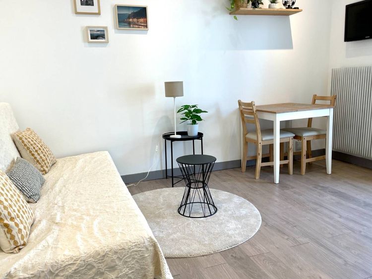 🏢 Ce studio décoré avec soins, situé au 2ème étage (sans ascenseur) se compose : - d'une jolie pièce à vivre avec canapé lit, cuisine ouverte et petit coin repas, - d’une salle d’eau avec douche et WC, - d’un balcon/terrasse de près de 8m², parfaitement calme (donne sur cour) et aménagée pour votre confort.