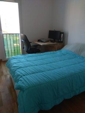 Chambre avec lit double bureau chaise télévision placard intégré et chauffage électrique /ventilateur pour l'été. Belle vue sur le Mont Faron.