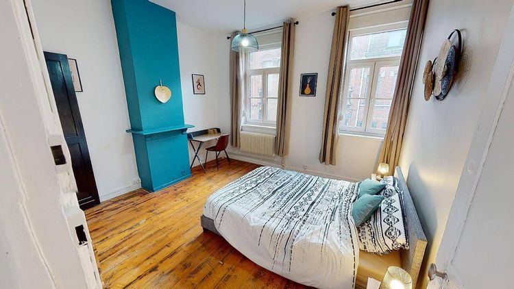 Au 85 Rue De Bouvines à Roubaix (59100), venez découvrir cette colocation de 3 chambres de 107 m². 🛌 LA CHAMBRE L’aménagement de la chambre 3 au 2ème étage sur la droite offre tout le confort nécessaire grâce à son lit double, son bureau, sa chaise et ses étagères de rangements. 🏠 LES ESPACES COMMUNS La porte d’entrée de cette colocation s’ouvre sur un couloir qui dessert les pièces de vie de cette colocation. Ces pièces de vie tout en longueur se compose d’un salon avec canapé, tables basses, TV, étagères et salle à manger avec table et chaise. La cuisine accessible par la salle à manger est entièrement équipée et fonctionnelle : frigo, four, micro-ondes, plaques de cuisson, hotte, rangements, etc. Des WC séparés avec machine à laver au RDC ainsi qu’une superbe salle de bain au 1er étage avec douche et baignoire ainsi que double vasque viennent compléter ce logement. Le plus : la présence d’une terrasse aménagée avec table et chaise accessible depuis le RDC. Elle bénéficie d'un chauffage alimenté au gaz. Elle est équipée de la fibre. 🌳 LES EXTÉRIEURS Une cave est associée à cette maison. 🏙️ LE QUARTIER Cette colocation dans une maison individuelle se trouve : à proximité des commerces nécessaire à la vie de tous les jours à moins de 15 minutes à pied de l’IUT de Lille - Site de Tourcoing à moins de 20 minutes du centre ville de Tourcoing ou circule la ligne de métro M2 et le Tram à proximité du centre Hospitalier de Roubaix à 10 minutes à pied l’ifsi - école infirmière à 15/20 minutes à pied de l’EDHEC Les lignes de bus 35 et L8 circulent dans un rayon de 300 mètres autour du logement. ———————————————————————— Bail individuel à la chambre. Pas de caution solidaire. Chacun est libre de partir quand il veut sans se soucier des autres colocs, dès le moment où il respecte un mois de préavis. Eligible aux APL. REFERENCE DU BIEN : SP9574I Les informations sur les risques auxquels ce bien est exposé sont disponibles sur le site Géorisques : www.georisques.gouv.fr Montant estimé des dépenses annuelles d'énergie pour un usage standard : 1576 € par an. Prix moyens des énergies indexés sur l'année 2021 (abonnements compris)