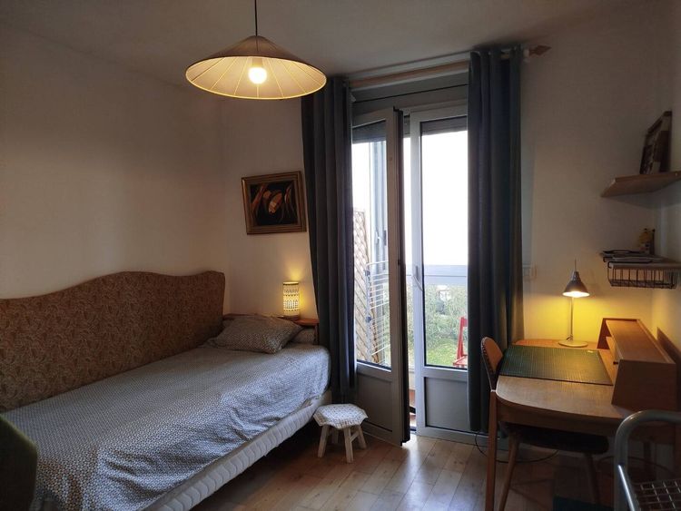 Chambre avec une bonne étanchéité thermique, a coté de la salle de douche privée, et du WC privée. Avec un lit simple, 1 bureau, 1 chaise, 1 armoire, 1 penderie, 1 meuble avec des casses de rangement. Linge du lit fourni. Une lavage en machine par semaine comprise. Un étendoir privé ensoleille dans le loggia.