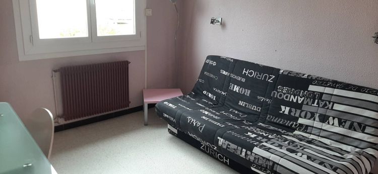 chambre meuble, confortable, vue sur le jardin. Meubles : lit BZ, petite table basse, lampe halogène, bureau informatique avec chaise, petits meubles de rangement, penderie avec étagères et cintres, couette et sa housse fournies, une paire de draps, deux oreillers avec taies, une TV avec télécommande, volets roulants électriques, porte avec serrure et clé.