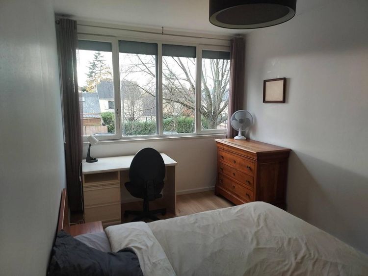 Chambre refaite à neuf, lumineuse avec un bureau et trois grands placards. Le lit est double. Le sol est du parquet. Les volets sont électriques.